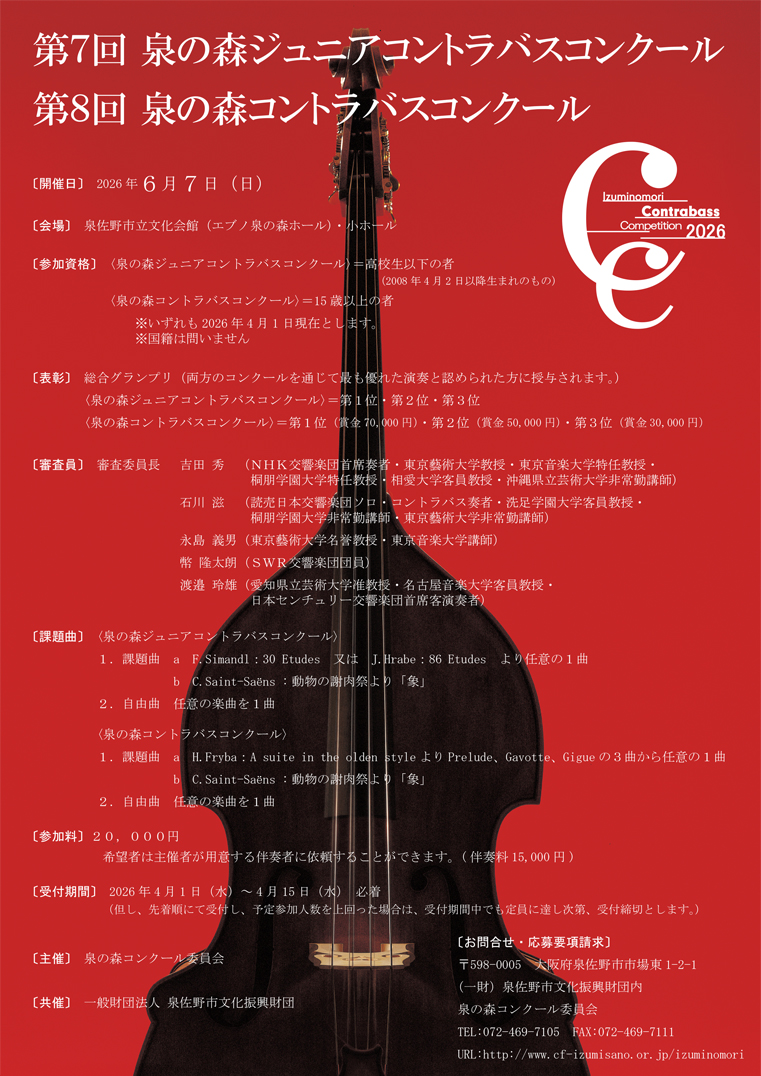 | 第7回 泉の森ジュニアコントラバスコンクール 第8回 泉の森コントラバスコンクール |