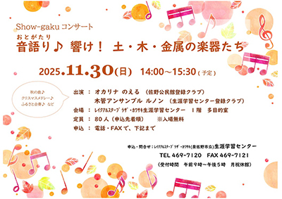 Show-gaku コンサート ~ 音語り♪ 響け!土・木・金属の楽器たち ~