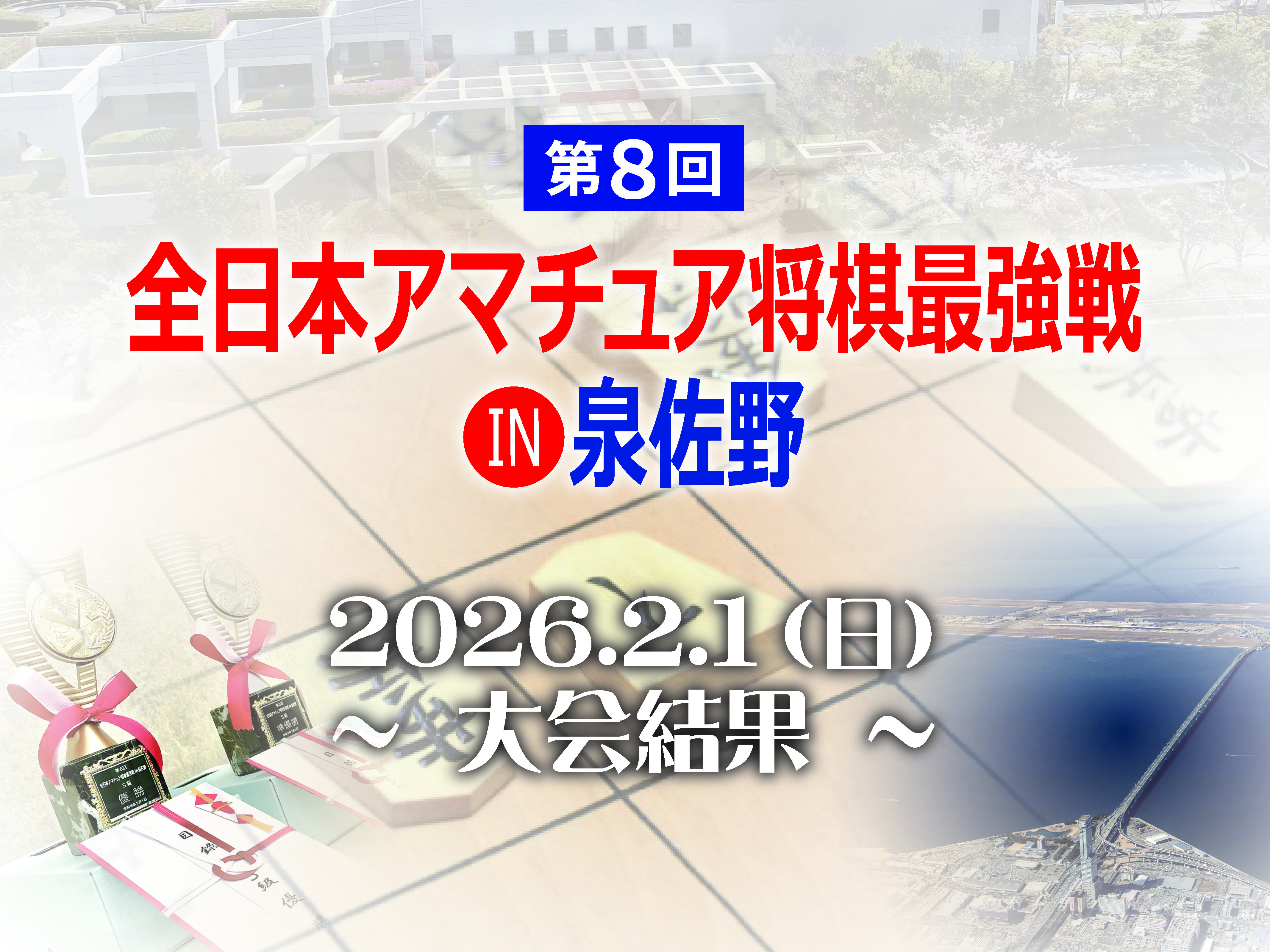 | 主催:泉佐野市・泉佐野市教育委員会 共催:一般財団法人泉佐野市文化振興財団 後援:公益社団法人日本将棋連盟 協賛:株式会社むか新 |