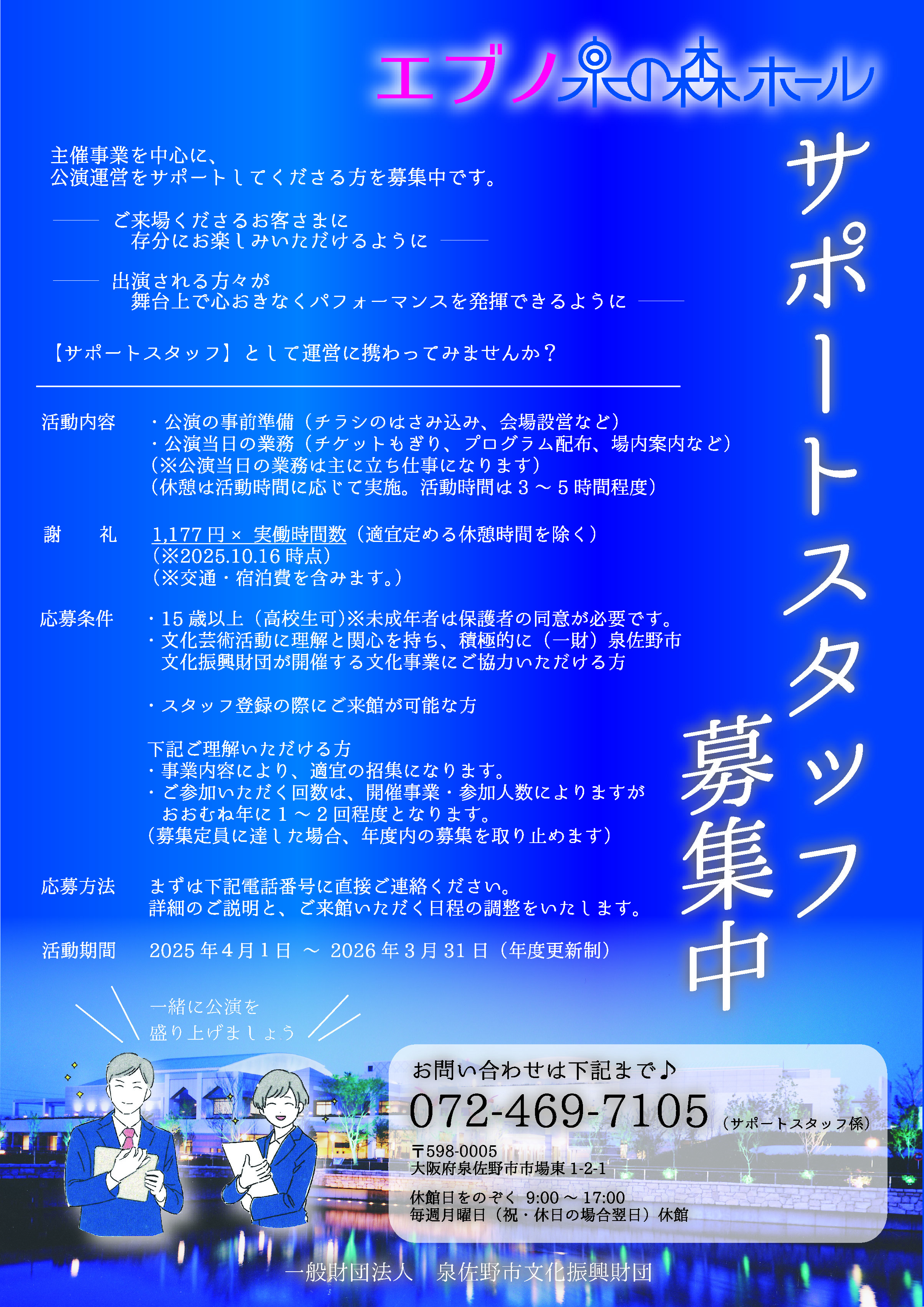 エブノ泉の森ホール サポートスタッフ係までお電話ください